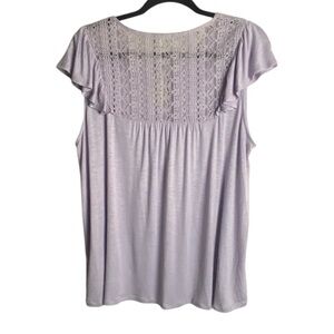 Maurice’s Plus Size 1X Lavender Lace Yoke Tassel Top Flutter Sleeve Purple Basic