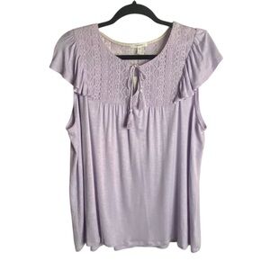 Maurice’s Plus Size 1X Lavender Lace Yoke Tassel Top Flutter Sleeve Purple Basic