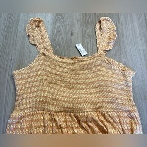 New with tags Maurices plus size 4X sleeveless dress featuring ruffle straps, a smocked bodice, and a tiered skirt with floral and geometric patterns in warm peach, yellow, and white tones. Fully lined with a soft yellow interior. Comfortable stretch fit with a flattering A-line silhouette. Ideal for summer, casual outings, or vacation wear.