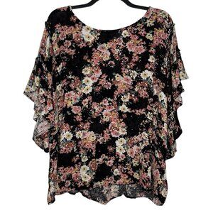 Maurices Plus Size Blouse Size 4X Floral Flutter Sleeve Scoop Neck Crinkle Gauze