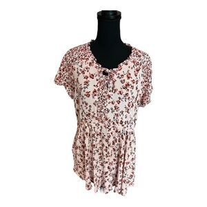 Plus size ditsy floral lace up tunic top by Maurices. Very good condition with no flaws noted.