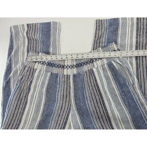 These Maurices Plus Size Linen Blend Wide Leg Pull On Cropped Pants in size 2 are perfect for a coastal boho style. The pants feature a striped pattern, pull-on closure, and a high rise waist. Made from a comfortable rayon and linen blend, they have a 27-inch inseam and a flat front design. Ideal for various occasions including travel, weddings, parties, casual outings, formal events, and workwear, these versatile pants are machine washable for easy care. The multicolor design and wide-leg style add a trendy and comfortable touch to any wardrobe, making them a great choice for those who love the beachy, bohemian look. Good used condition. No stains or holes found. Please feel free to ask questions.