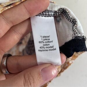 This cream-colored top from Maurices features a short sleeve design, perfect for a casual and comfortable fit. The artistic floral pattern adds a touch of elegance, making it a versatile addition to any wardrobe.