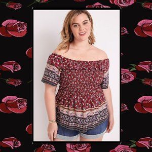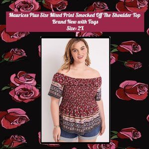 Maurice's Plus Size Mixed Print Off the Shoulder Top 2X