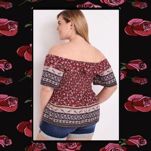 Maurice's Plus Size Mixed Print Off the Shoulder Top