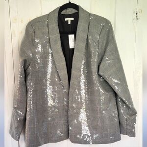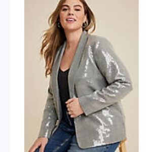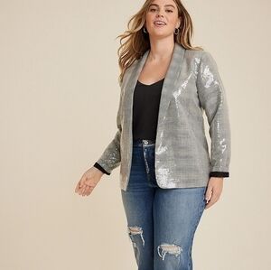 Maurices Plus Size Open Front Sequin Plaid Blazer