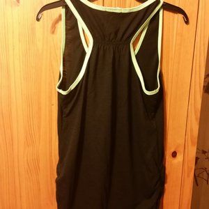 Black/Lime green racer back tank. Picture does not show well but the lime green trim is bold in color. 50% cotton, 50% polyester. Excellent condition.