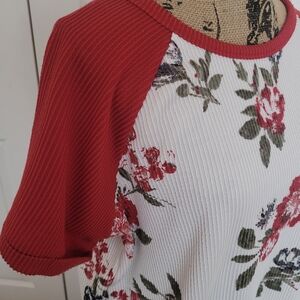 Cute ribbed floral design with raglan sleeves. Perfect for casual outings. New without tags.