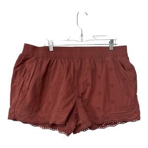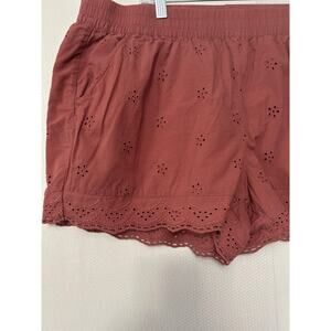 Maurices Red Eyelet Lace Hem Shorts Elastic Waist Pockets Casual Summer XXL