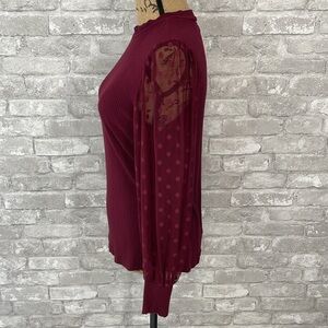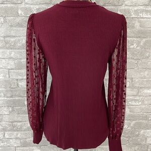 Maurices Red Sheer Polka Dot Sleeve Mock Neck Top