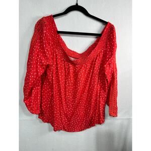 Maurices Red White Polka Dot Off Shoulder Peasant Blouse 3/4 Sleeve Plus 1X New