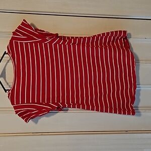 Maurices Red White Striped Double Ruffled Sleeve Top Medium