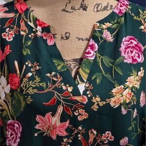 Maurices Roll Tab Floral Green Women's Top Plus Size 3X