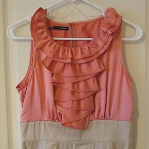 Salmon pink bodice with ruffled front and straight tan skirt. Worn once, in excellent condition! Size 5/6.