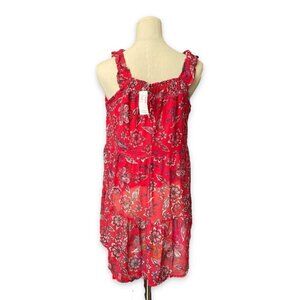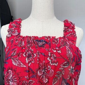 Maurices Ruffle Trim Top Women S Red Floral Square Neck Sheer Lined High Low NWT