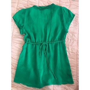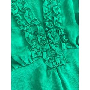 Beautiful kelly green top with ruffled collar and subtle polka dots throughout.