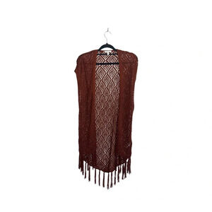 Maurices Rust Orange Fringe Sleeveless Open Knit Duster Cardigan Xsmall Women’s