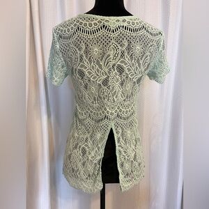 Maurices Sheer Mint Green Lace Short Sleeve Blouse Size Small