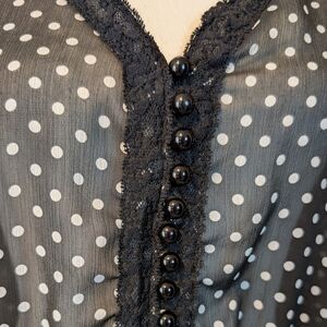 Maurices Sheer Vneck Black and White Polka Dot BlouseFabric: 100% Poly