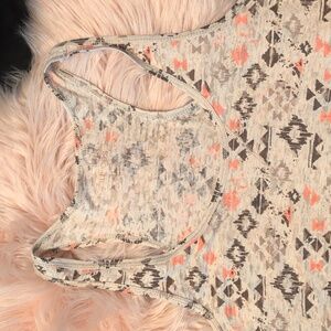 Great shell from Maurices. Semi-Aztec design, colors are tan, brown, peach and light taupe. Size small, extra long and flowy. Measurements laying flat are 16" pit to pit, 18" length from pit. Excellent like new condition Bundle up to 5 pounds and save on shipping!!