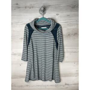 Maurices Shirt Womens 1X Gray Teal Cowl Neck Tunic 3/4 Sleeve Lace Inset Knit
