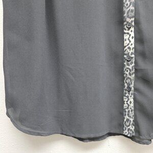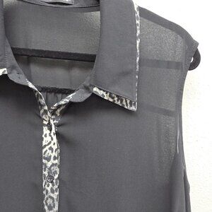 Maurices Shirt Womens 2X Black Sleeveless Button Sheer Leopard Trim Chiffon
