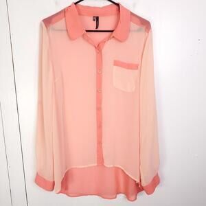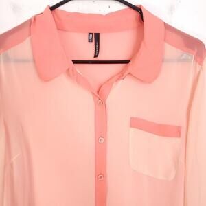 Maurices Shirt Womens Large Semi Sheer Button Down Two Tone Colorblock Pink