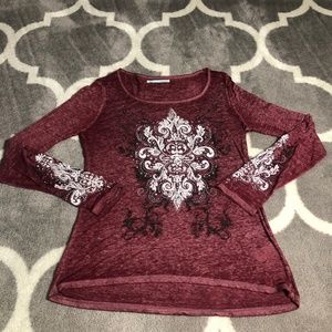 Maurices Shirt Womens Medium Maroon Embellished Burnout Long Sleeve Top