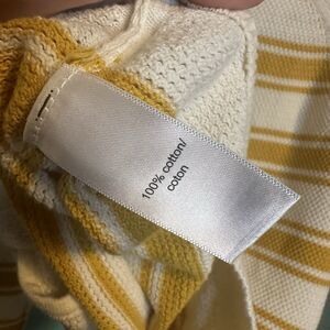 This Maurices shirt is a chic and stylish option for women in size small. It features a striped pattern in cream and yellow, with long raglan sleeves and a pullover closure for a casual look. Made from 100% cotton knit fabric, this T-shirt is perfect for all seasons and offers a regular fit. The classic design and the brand's quality make it a versatile and comfortable addition to any wardrobe.