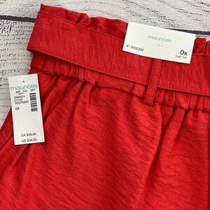 Maurices Shorts sz 0X High Rise Tie Front 4" Inseam Coral Pull on Belt New NWT