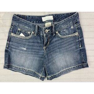 Maurices Size 3/4 Womens Shorts Denim Jean Low Rise Med Wash Distress Stretch