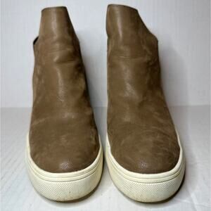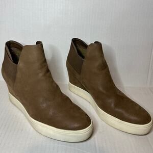 Maurices Size 9 Pull On Wedge Heel Ankle Boots Faux Leather Beige Casual