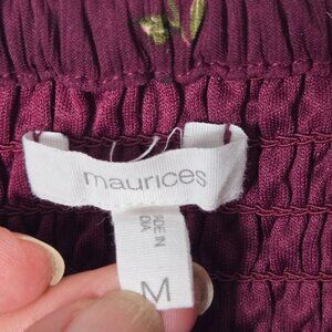 Maurices Size M Floral Arbor Smocked Berry Wine Long Puff Sleeve Dress Knee Leng