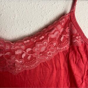 Maurice’s Size Medium Y2K Crinkle Lace Cami Tank Top Coral Pink Spegetti Strap