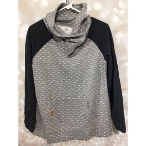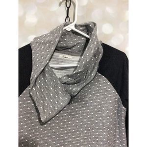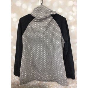 Maurice’s Size Small Zip Cowl Neck Sweatshirt Top Gray White Swiss Dot