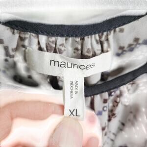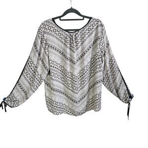 Maurices Size XL Lightweight Chiffon Tie Wrist Blouse Gray Black Boho Chevron