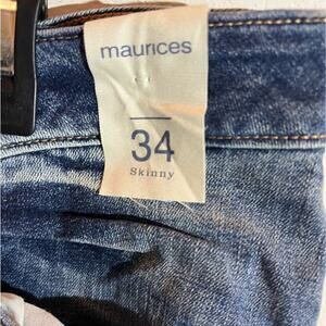 Maurices Skinny Ankle Jeans Womens Size 34 (38x26) Blue Destructed High Rise