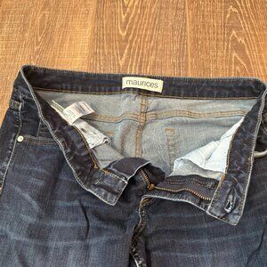 Maurices Skinny Jeans. Size 30. Inseam 29”. 9” rise. 85% cotton, 13% polyester, 2% Spandex. 3 front pockets and 2 back pockets. Zip and button closure. There is a wear spot by the button but otherwise still in great used condition. Please see photos.