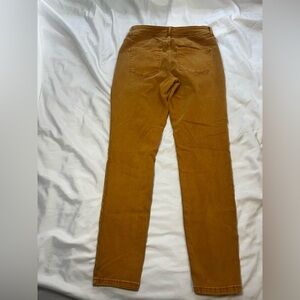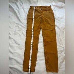 These Maurices skinny jeans in a warm tan/ mustard color offer a sleek and modern fit, perfect for any casual occasion. Crafted from durable denim, they provide both comfort and style, making them a versatile addition to your wardrobe.