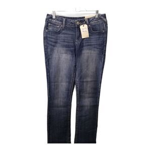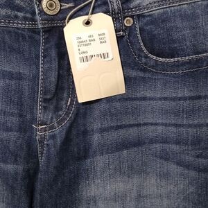 Medium Wash slim boot denim flex Midrise Jeans Size 8 LONG. Has a small amount of embroidery.