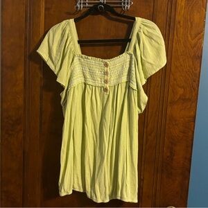 Maurice’s Smocked Light Green/Yellow Button Front Blouse Size 2X
