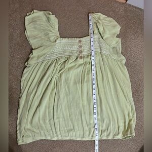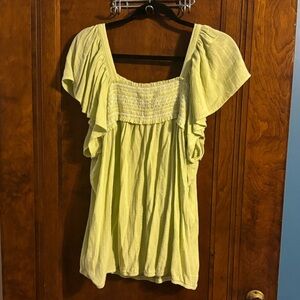 Spring, summer, fall, green, yellow, lime green, light green, smocked, smock, shirt, top, vacation, party, graduation party, picnic, apple picking, sunflower farm, tulip garden, fair, festival, flutter sleeve,plus size