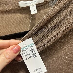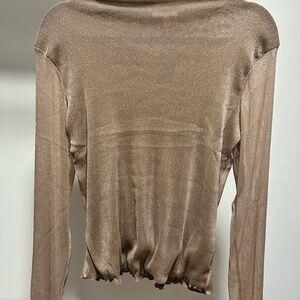 Maurices Sparkle Mock Neck Top Sheer Tan Lettuce Hem Medium