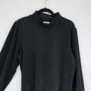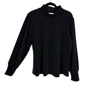 Maurices Sparkle high neck Top size XL Black shimmer Balloon Sleeve Pullover