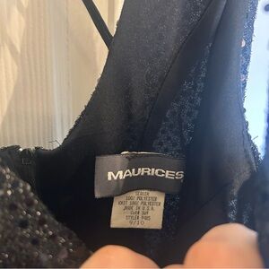 The Maurices Women's Sleeveless Dress in size 9/10 is a chic and elegant choice for any party or cocktail event. The dress features a round neckline, a back zipper closure, and is made of polyester material. The standout feature of this dress is the sequin detailing on the back, adding a touch of glamour to the classic black color. With a long dress length and a sheath style, this dress is perfect for summer, fall, or spring occasions where you want to make a stylish statement.