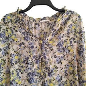 Maurices Spring Floral Button Down W Puff Sleeves & Ruffle Collar XL