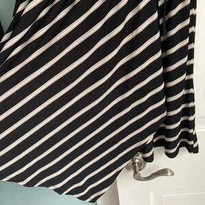 Maurices Stripe Flutter Sleeve Wrap Dress V-Neck Black White Tan Gray Size S