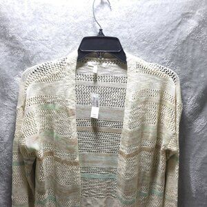 Maurices Striped Pointelle Duster Cardigan , Size Small Open Front Knit Sweater