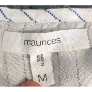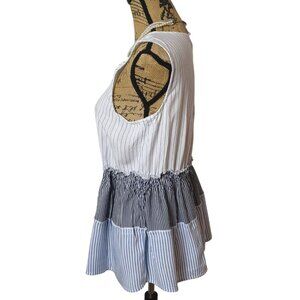 striped top, peplum blouse, sleeveless shirt, lace-up top, Maurices fashion, casual chic blouse, women's summer top, trendy apparel, cotton top, blue and white, versatile wear, medium size, fashionable women's clothing