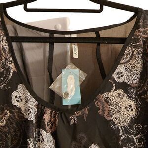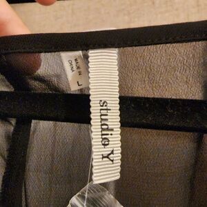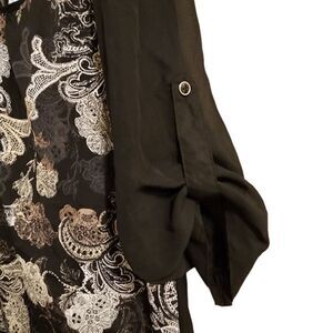Maurices Studio Y Large Black White Lace Button 3/4 Sleeve Chiffon Top